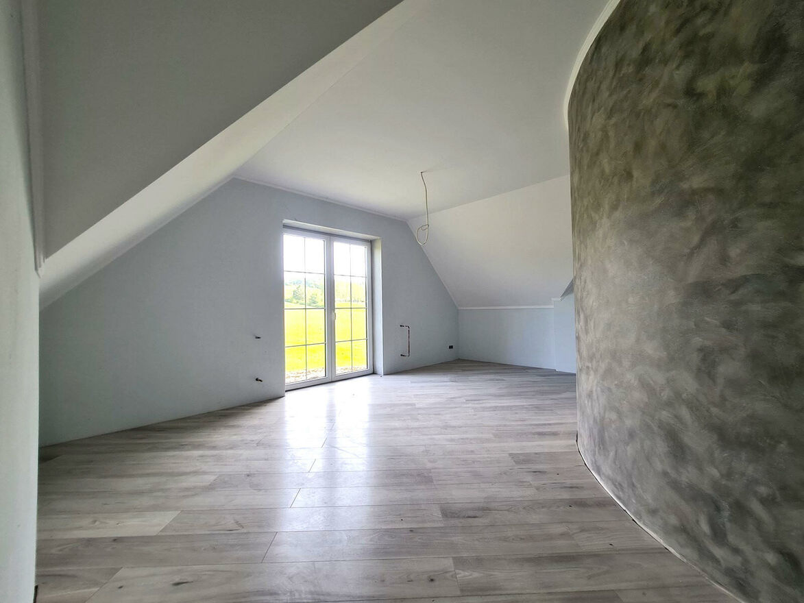 NAJWAŻNIEJSZE ATUTY NIERUCHOMOŚCI: Stan: częściowo pod klucz, częściowo deweloperski możliwość wykończenia domu zgodnie z własnym gustem, przy jednoczesnym czerpaniu korzyści z już wykonanych prac. Solidna, nowoczesna konstrukcja budynek z pustaka ceramicznego MAX, dach wielospadowy pokryty blachodachówką w eleganckim antracycie, kompletne orynnowanie. Wysoka jakość wykończenia tynki cementowo-wapienne z gładziami, dekoracyjne oświetlenie LED, sufity podwieszane, wysokogatunkowe płytki ceramiczne, stylowe schody. Ogrzewanie podłogowe na parterze i w łazience na poddaszu. Duża, płaska działka ok. 18 arów w trakcie podziału, z bezpośrednim wjazdem z drogi gminnej asfaltowej. Doskonała komunikacja z Jasłem szybki dojazd drogą wojewódzką nr 992. Spokojne, zielone otoczenie sąsiedztwo nowych domów, blisko las i otwarte przestrzenie. UKŁAD I FUNKCJONALNOŚĆ DOMU (134,57 M):